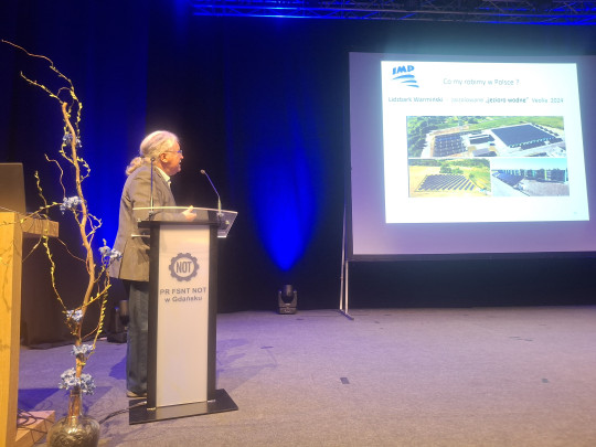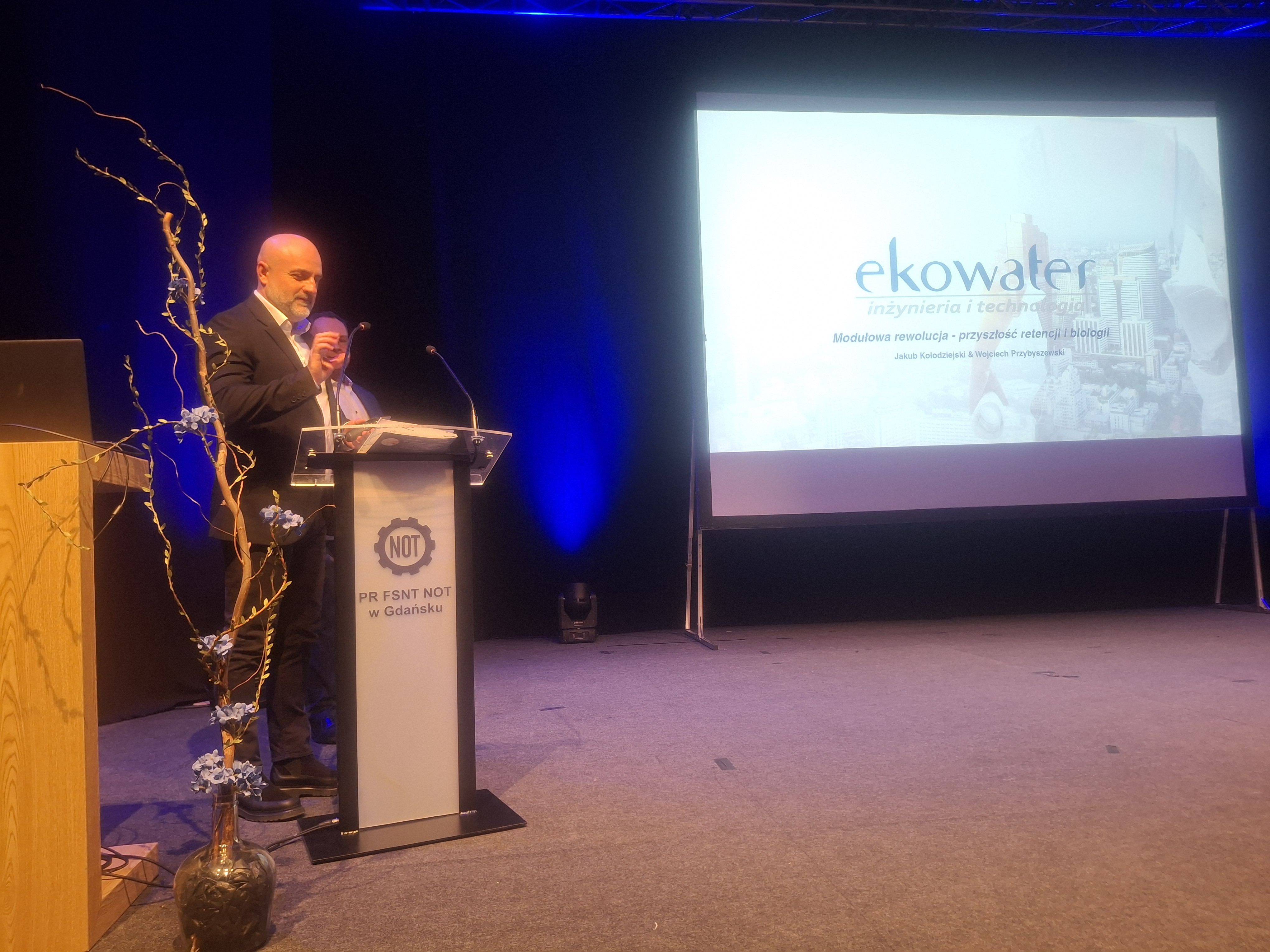 Druga część konferencji koncentrowała się na wyzwaniach projektowych, edukacyjnych oraz instytucjonalnych. Pan Marcin Blockus z firmy Ingeo Sp. z o.o., poruszył temat trudności, z jakimi mierzą się projektanci w dynamicznie zmieniającym się otoczeniu formalno-prawnym i środowiskowym. Interesującą perspektywę przedstawili uczniowie Centrum Kształcenia Zawodowego i Ustawicznego nr 2, którzy zwrócili uwagę na niepewną przyszłość szkolnictwa zawodowego. W dalszej części bryg. Leszek Kowalczuk - Prezes SITP oddział w Gdańsku oraz st. kpt. Jakub Groth - członek SITP Oddział w Gdańsku omówili znaczenie wody w działaniach straży pożarnej, podkreślając jej kluczową rolę w sytuacjach kryzysowych. Pan Rafał Węglarek -Dyrektor ds. ochrony środowiska Wojewódzkiego Funduszu Ochrony Środowiska i Gospodarki Wodnej w Gdańsku, zaprezentował aktualne wyzwania gospodarki wodno-ściekowej w regionie oraz możliwości wsparcia inwestycji. Blok zakończyło wystąpienie Pani Gabrieli Olechno z PM Ecology, która przedstawiła znaczenie nowoczesnych systemów monitoringu jakości wód oraz ich rolę w procesach decyzyjnych.